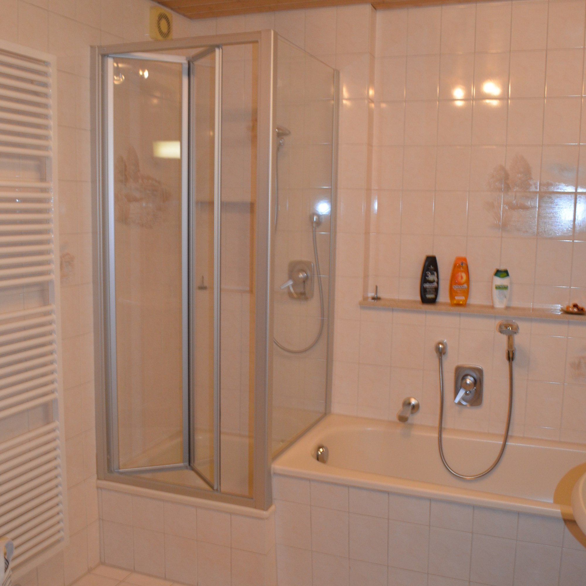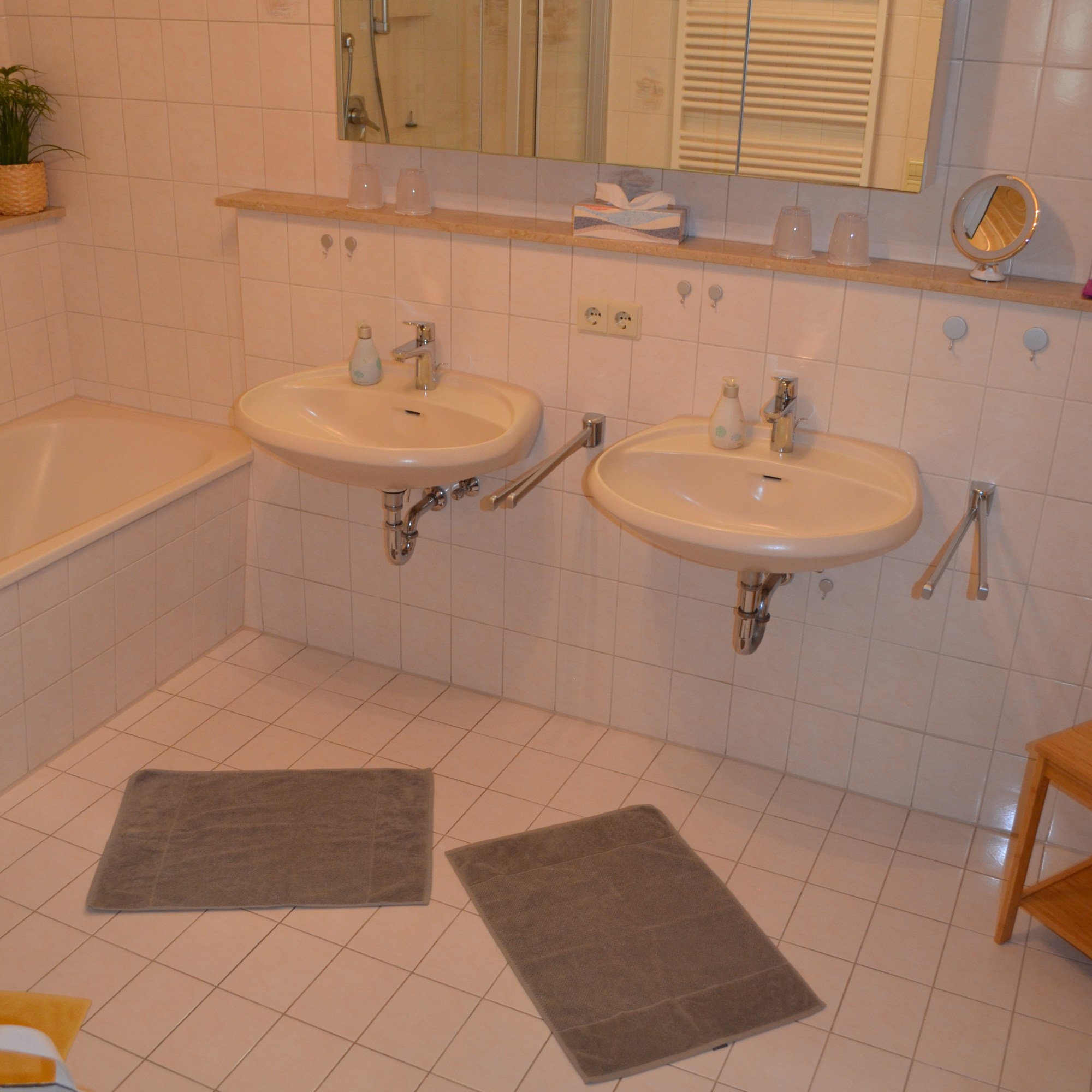 - Badezimmer mit Dusche, Badewanne und Doppelwaschbecken, Hand- u. Duschbadetücher je Gästeanzahl vorhanden!