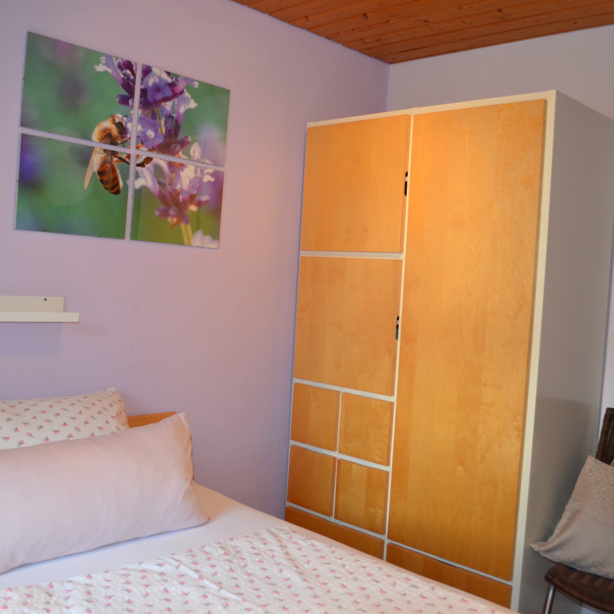 - 1 Schlafzimmer mit einem franz. Bett 1,40 m breit (1 Matratze), Kleiderschrank
